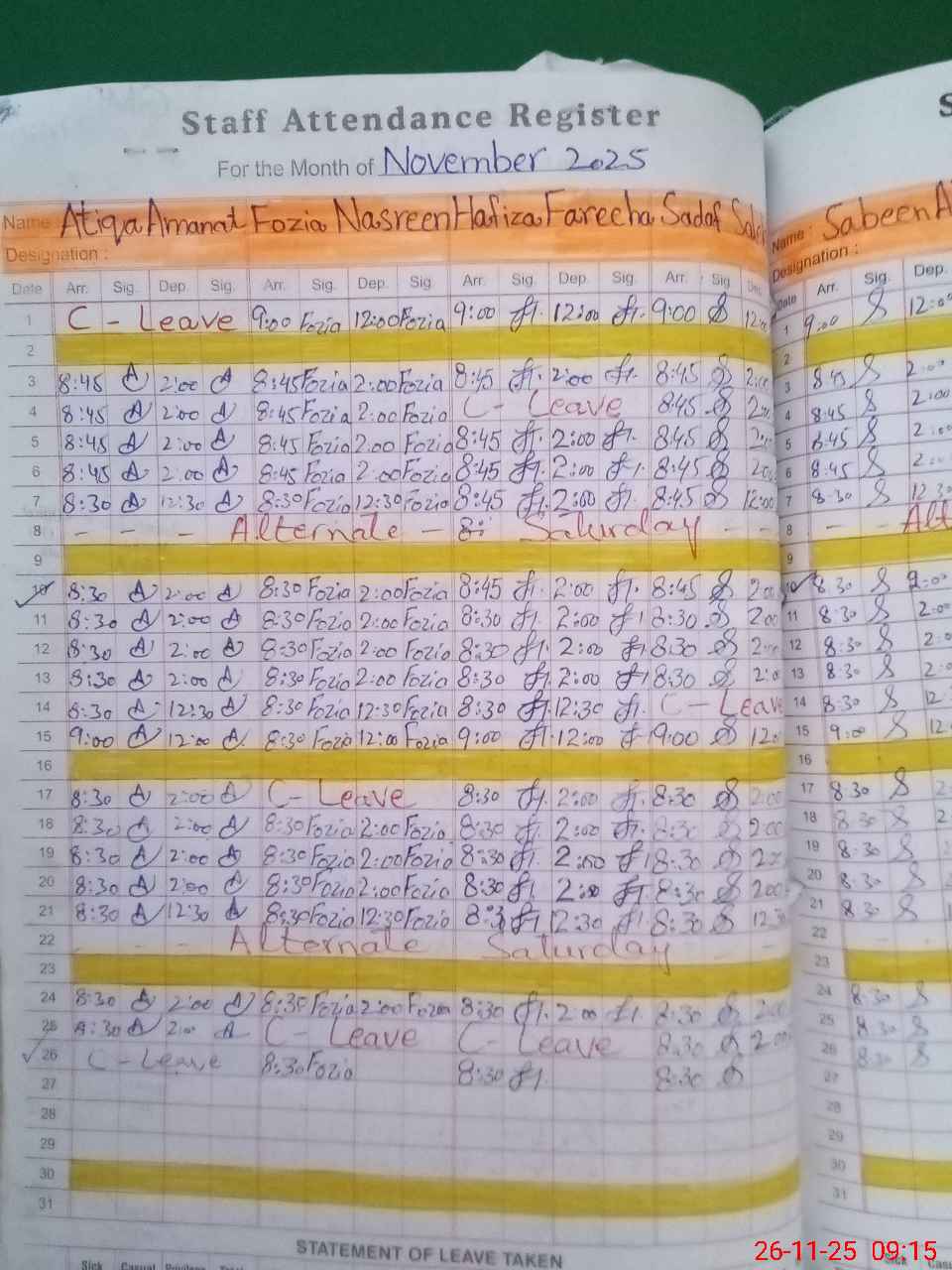 | Leave | Duty | Absent | Maternity | Medical | Ex- Pak |