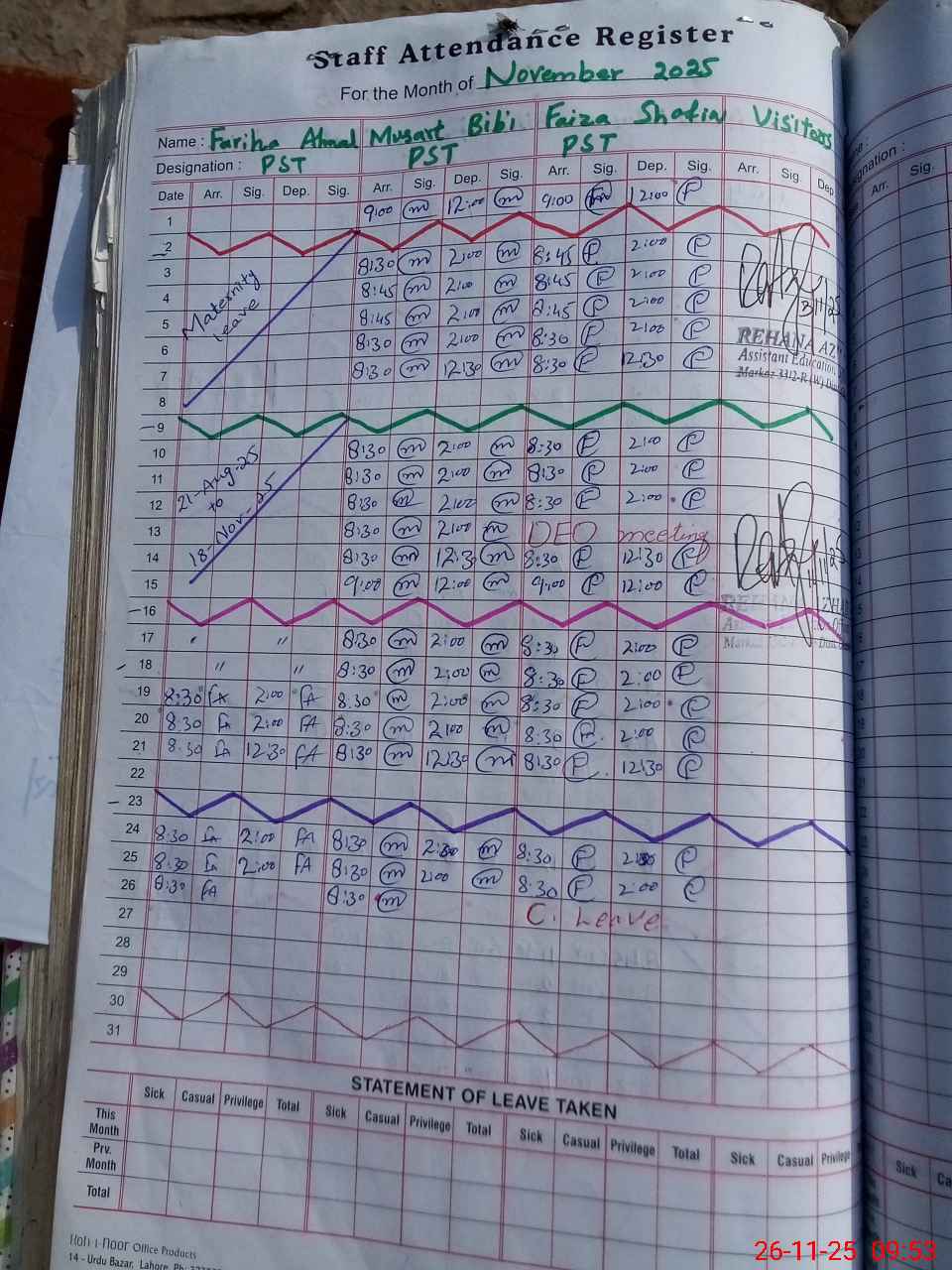 | Leave | Duty | Absent | Maternity | Medical | Ex- Pak |