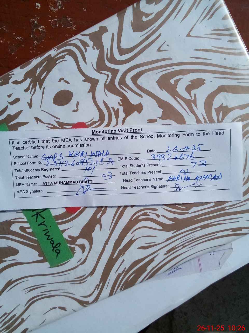 | EMIS Code: 39320676 | Name of School: GMPS KIKRI WALA | |||