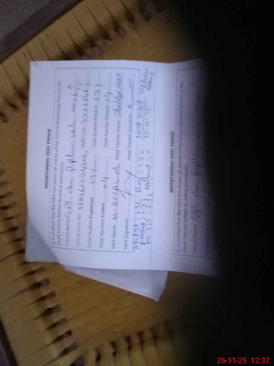 | Attendance Register | Head Teacher | MEA with School | Visit Proof |