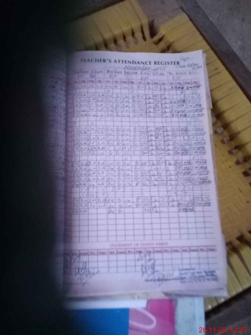 | Name: SH**** KH**** Designation: (School Headmaster's/Headmistress's) PST Phone/Cell Number: 03**** |