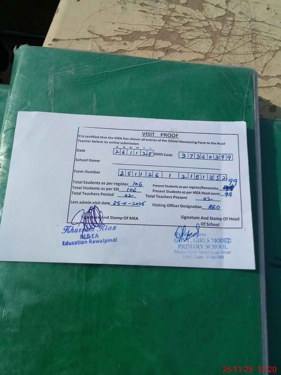 | EMIS Code: 37360399 | Name of School: GGPS MODEL DHOK BAGH | |||
