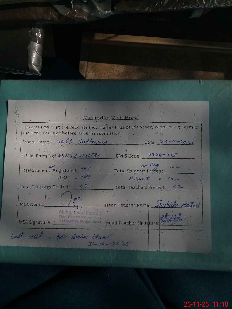 | EMIS Code: 33240455 | Name of School: GGPS SADHANA SAMANDNA | |||
