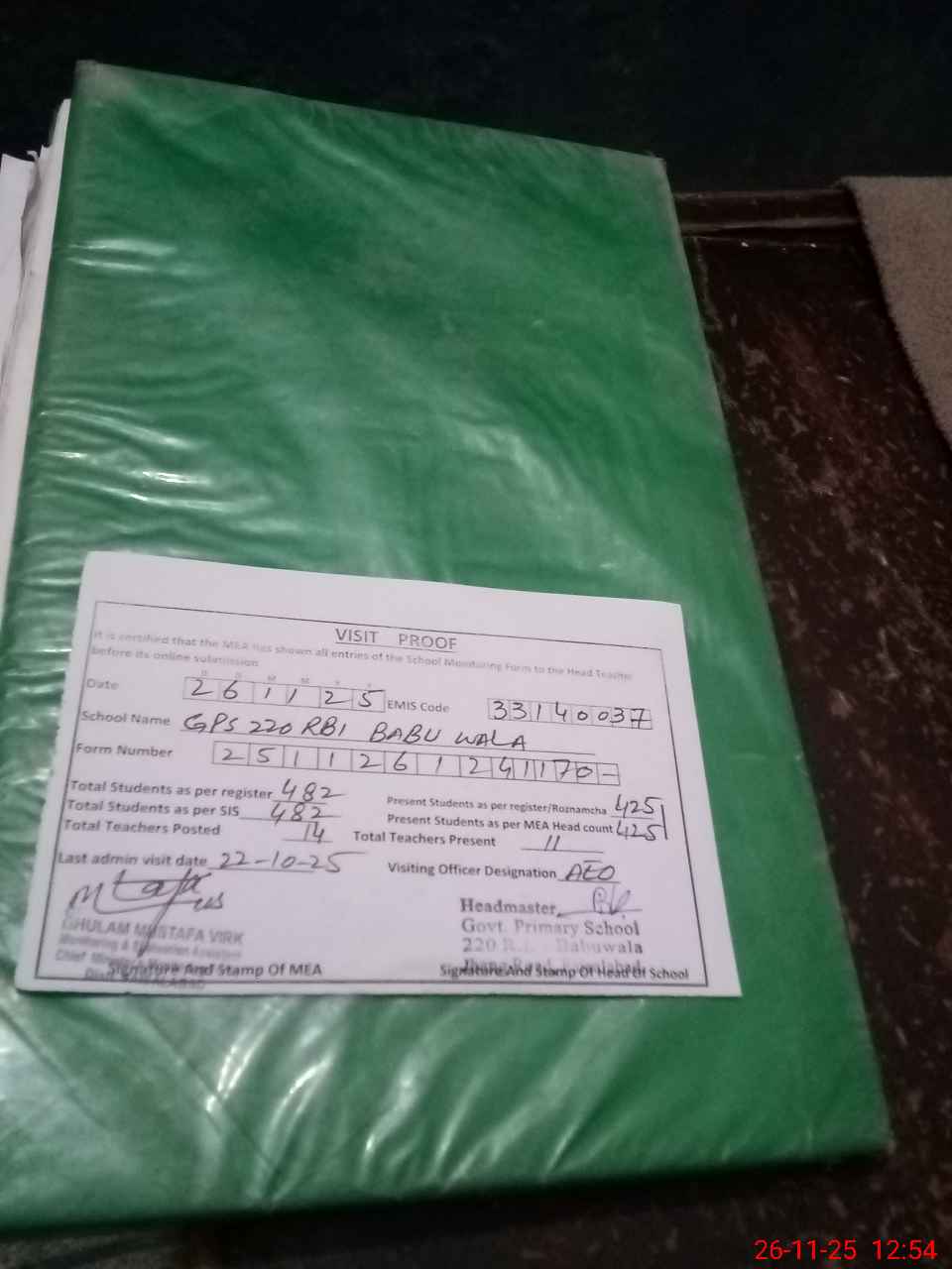 | Attendance Register | Head Teacher | MEA with School | Visit Proof |