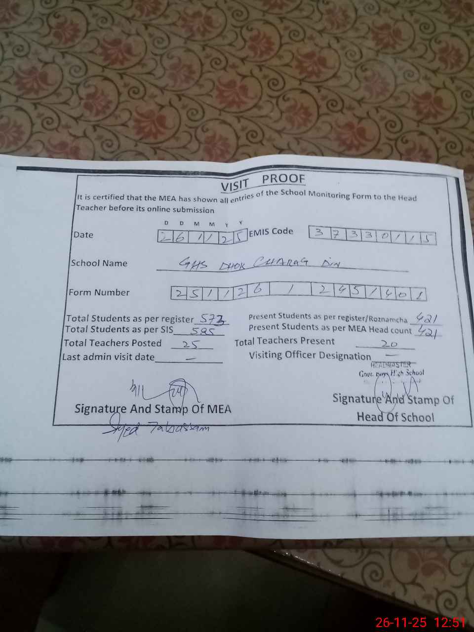 | EMIS Code: 37330115 | Name of School: GHS DHOK CHARAG DIN | |||