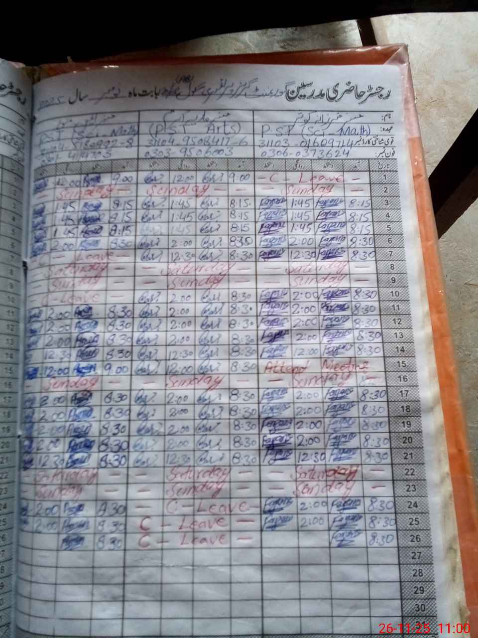 | CNIC | Full Name | Designation | R/C | Absence During Last Calender Month |