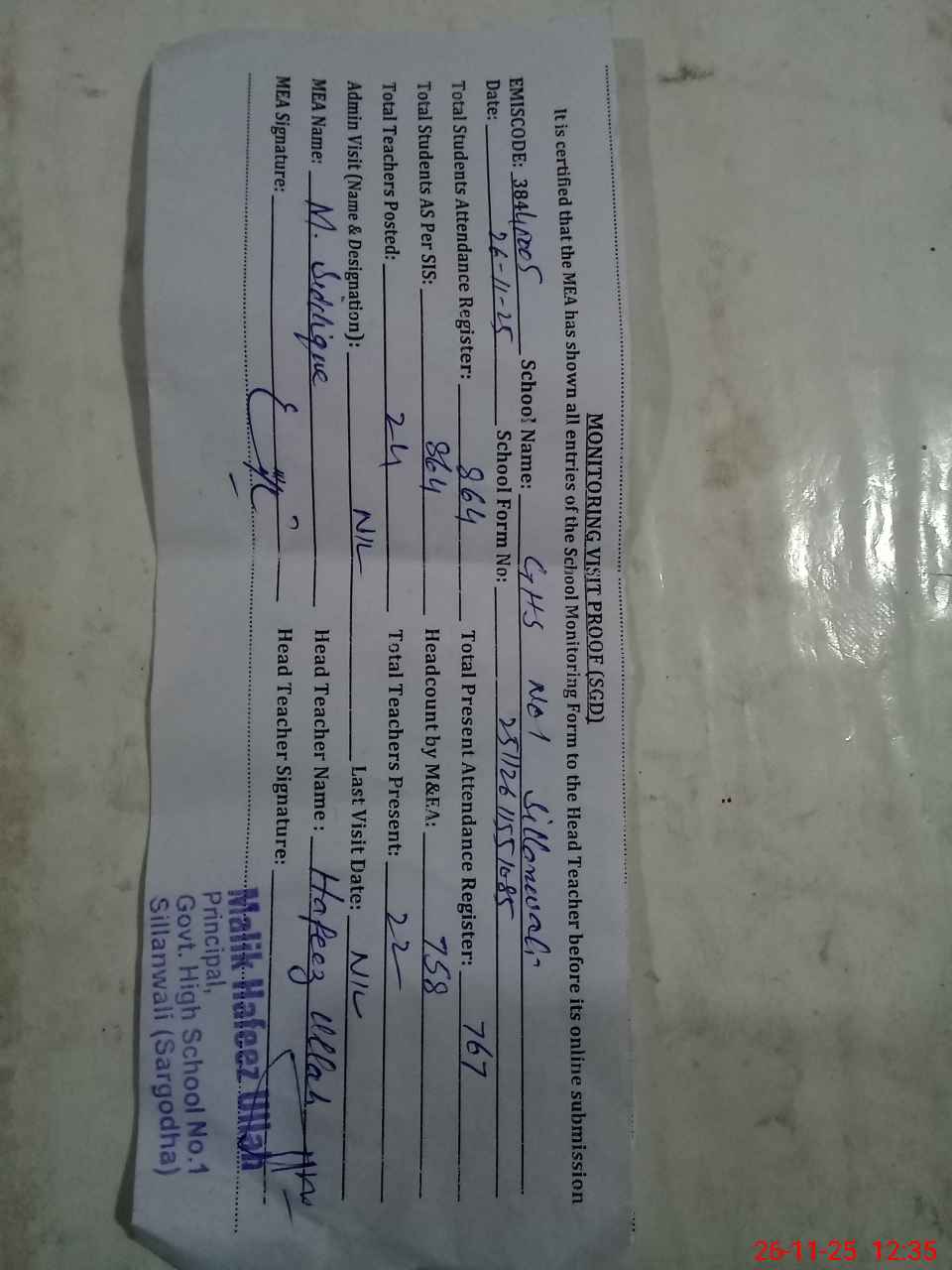 | EMIS Code: 38440005 | Name of School: GHS NO.1 SILLANWALI | |||