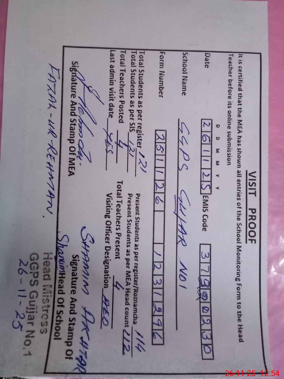 | EMIS Code: 37220230 | Name of School: GGPS GUJJAR NO.1 | |||