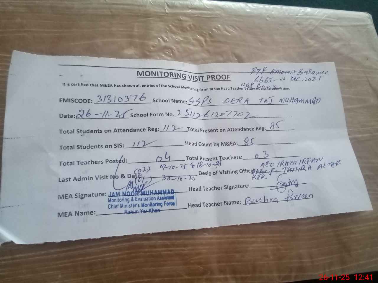 | EMIS Code: 31310376 | Name of School: GGPS DERA TAJ MUHAMMAD | |||