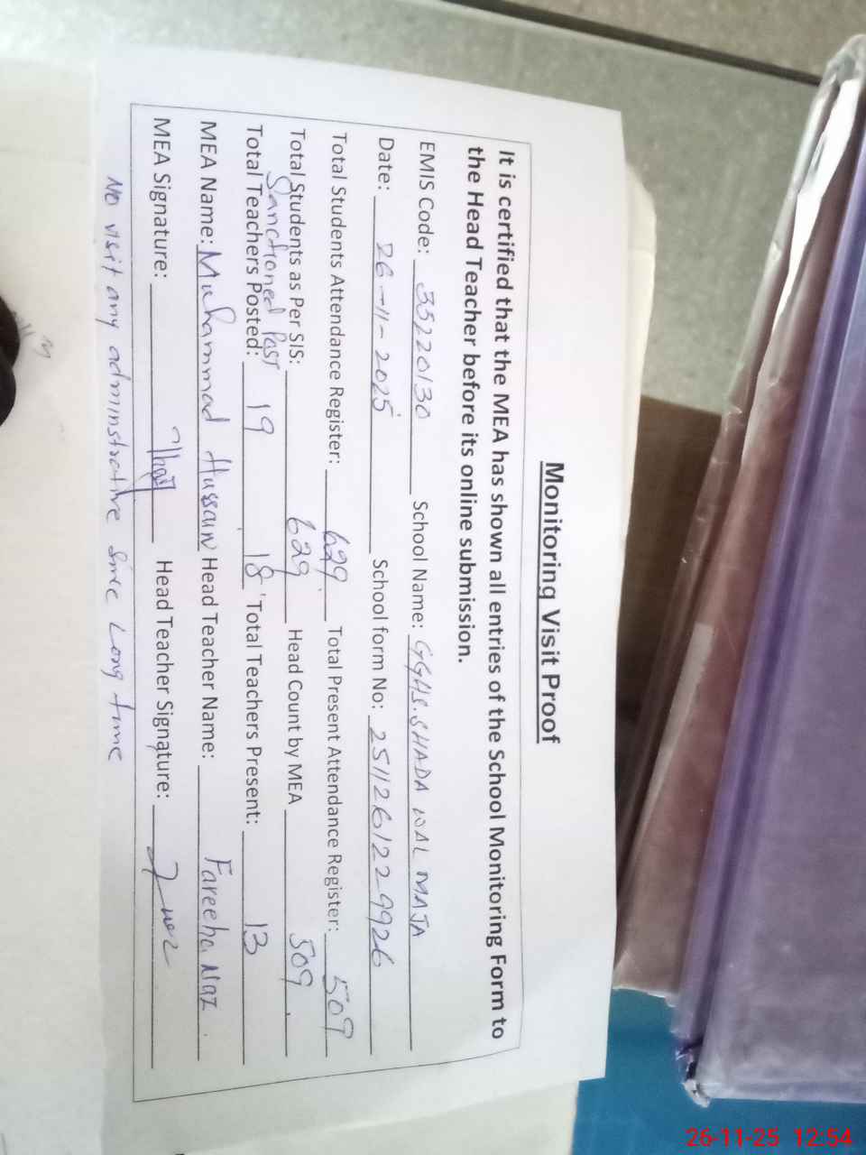 | EMIS Code: 35220130 | Name of School: GGHS SHADA WAL MAJA | |||