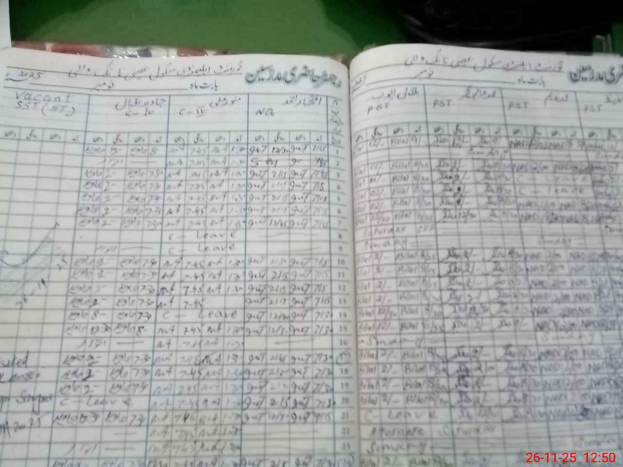 | Leave | Duty | Absent | Maternity | Medical | Ex- Pak |
