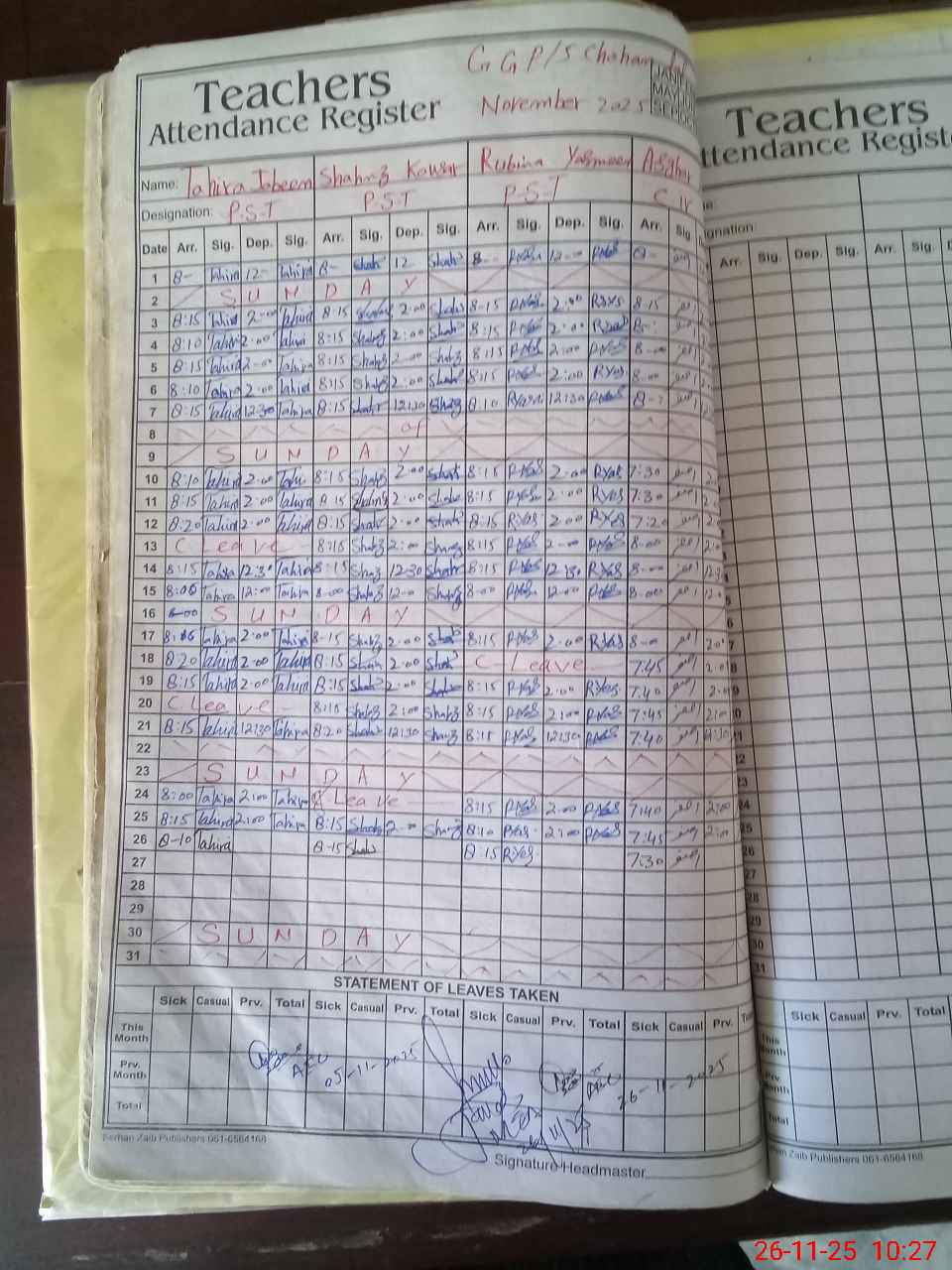 | Remarks (Use Separate Page if Required): Misbah In nisa PST had been resigned From Service Since March,2025 But Still on School Strength | |||||