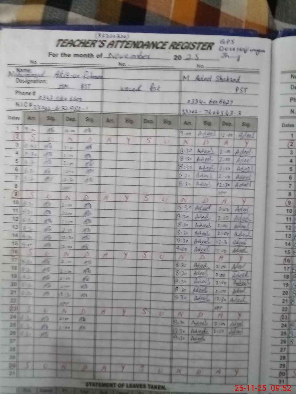 | Name: MU**** AT**** URRE**** Designation: (School Headmaster's/Headmistress's) PST Phone/Cell Number: 03**** |