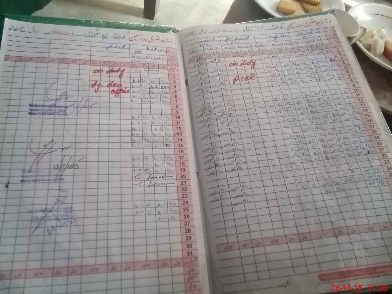 | CNIC | Full Name | Designation | R/C | Absence During Last Calender Month |