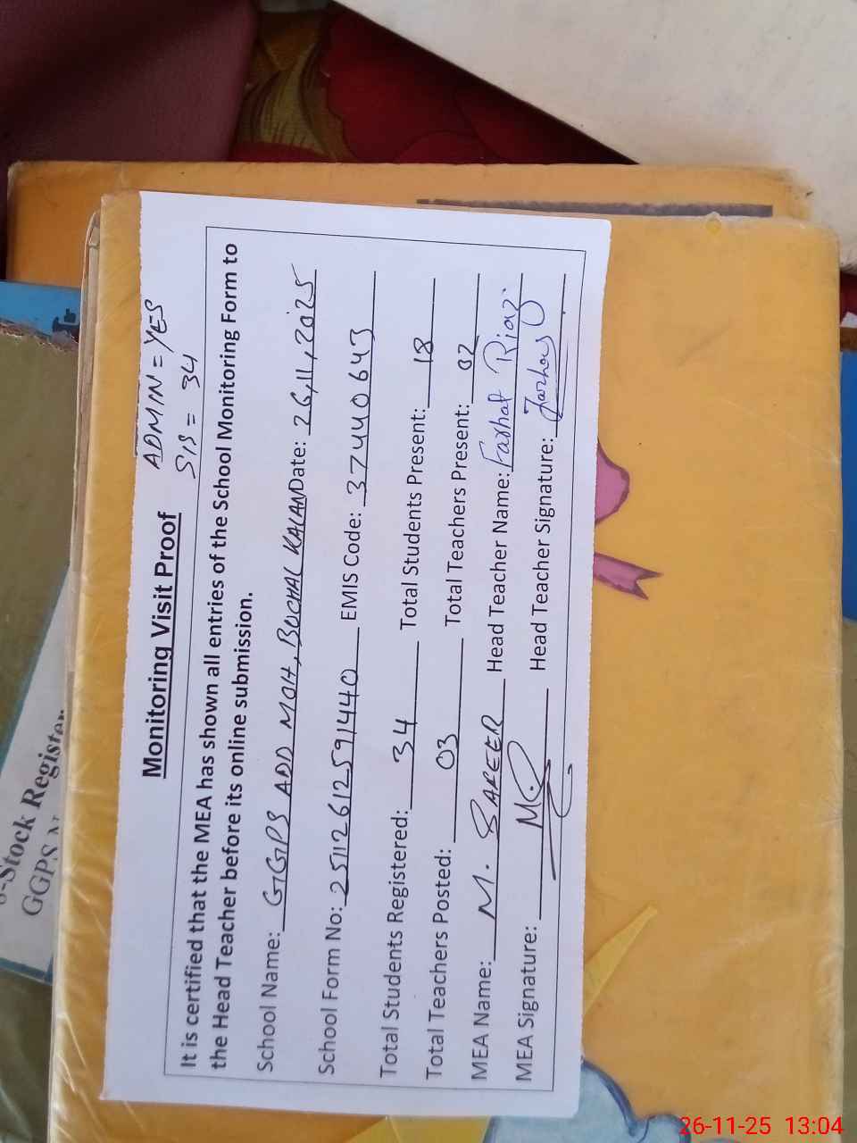 | EMIS Code: 37440643 | Name of School: GGPS ADDA MUHALLA BUCHAL KALAN | |||