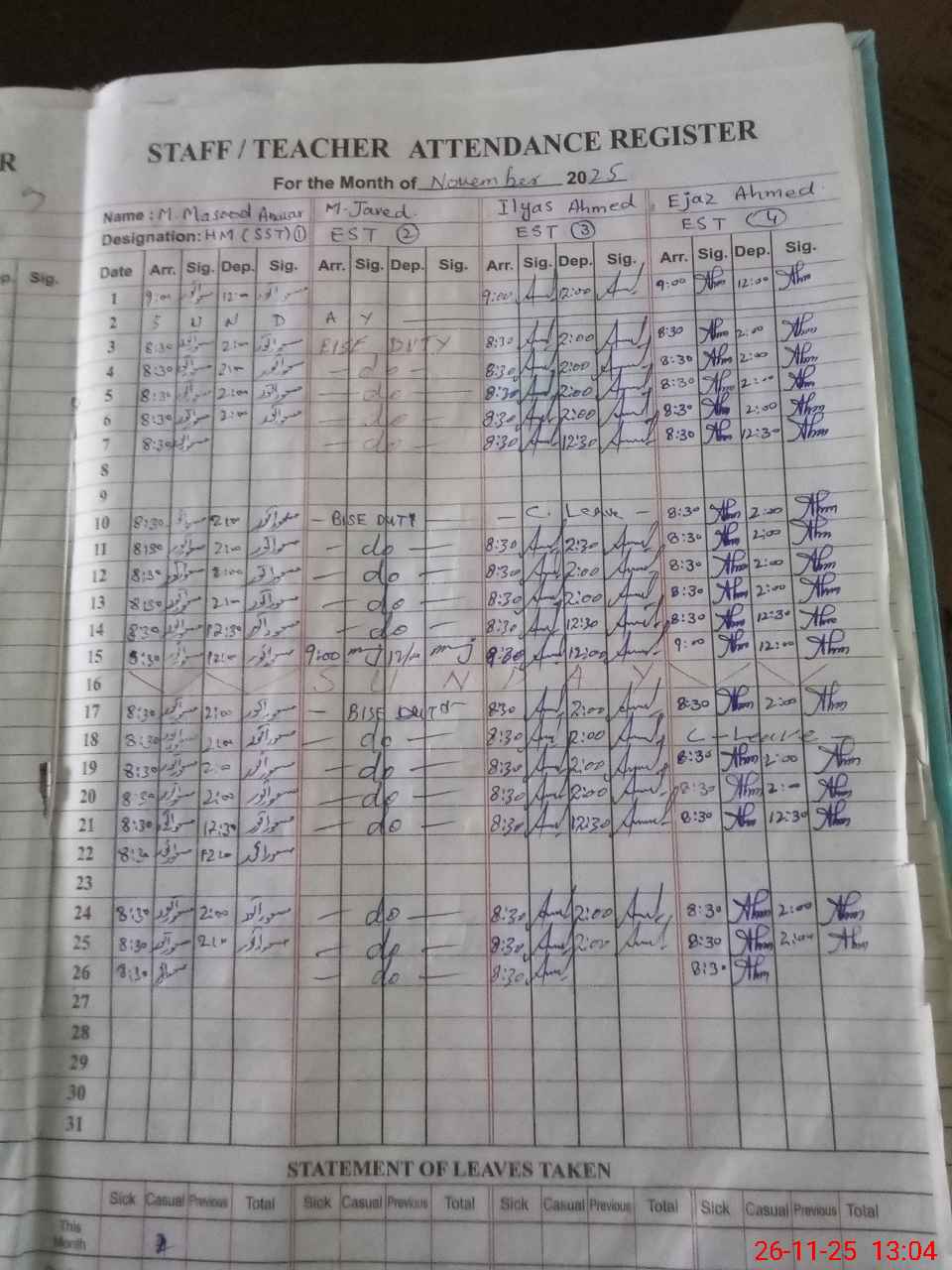 | 35**** | Ab**** Ka**** | Regular | 0 | 0 | 0 | 0 | 0 | 0 | 0 | 0 | 0 | Exam Duty | |