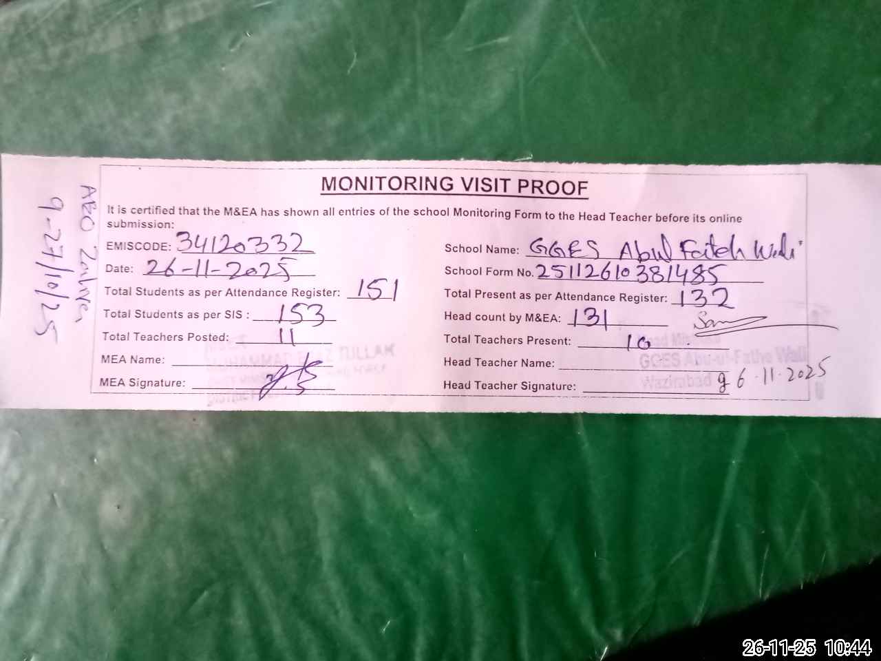 | EMIS Code: 34120332 | Name of School: GGES ABU-UL-FATEH WALI | |||