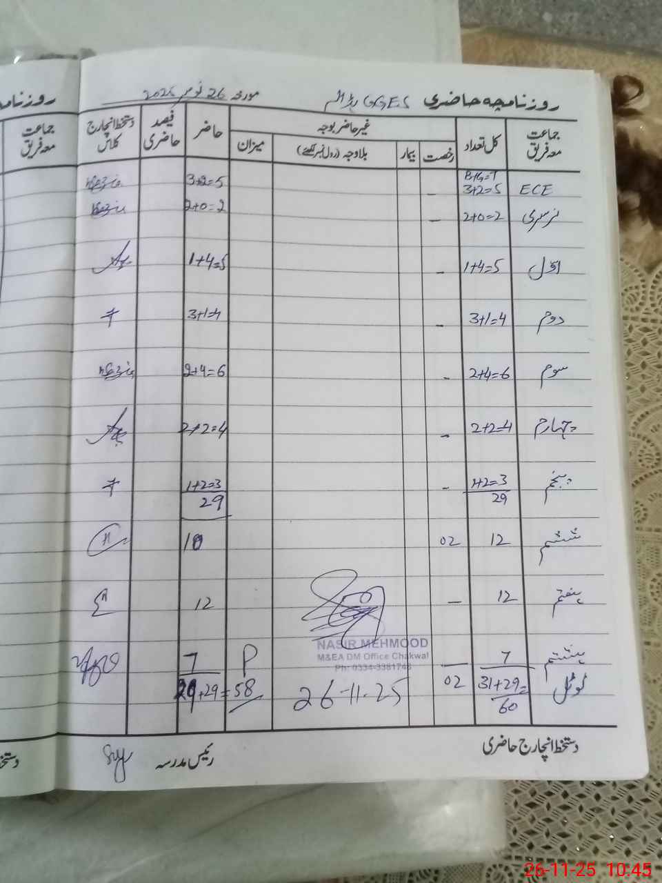| Name: Sa**** Ya**** Designation: (School Headmaster's/Headmistress's) HEADMISTRESS Phone/Cell Number: 03**** |