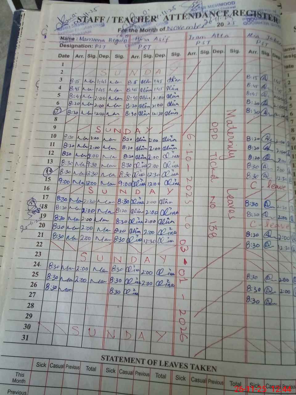 | 38**** | Ir**** At**** | PST | Regular | 27 | 0 | 0 | 26 | 0 | 0 | 0 | 0 | 1 | Maternity |