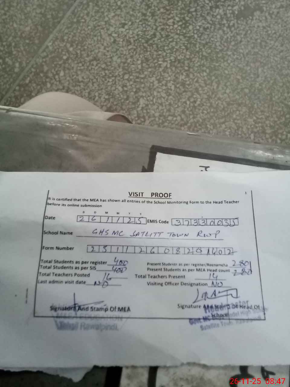 | EMIS Code: 37330033 | Name of School: GHS MC SATELLITE TOWN | |||