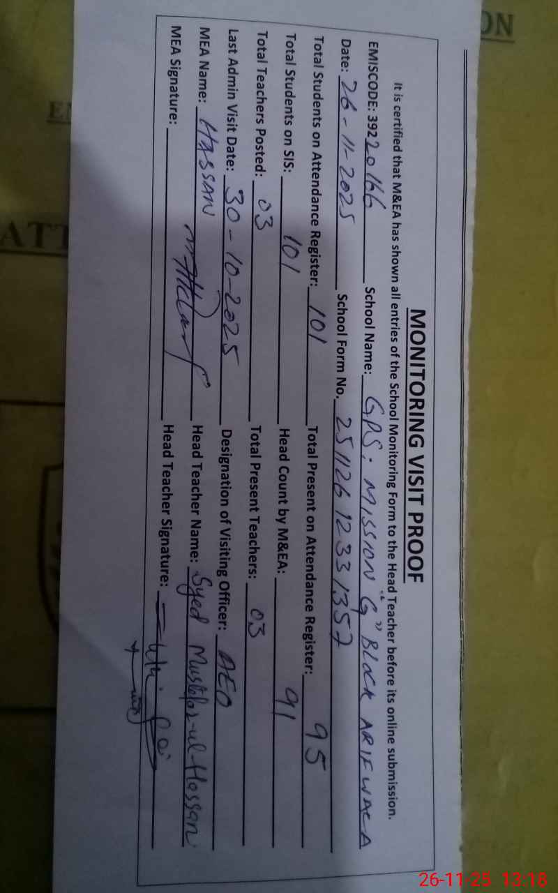 | EMIS Code: 39220166 | Name of School: GPS MISSION BLOCK G | |||