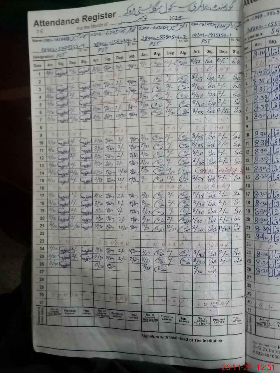 | Name: SA**** HU**** Designation: (School Headmaster's/Headmistress's) PST Phone/Cell Number: 03**** |