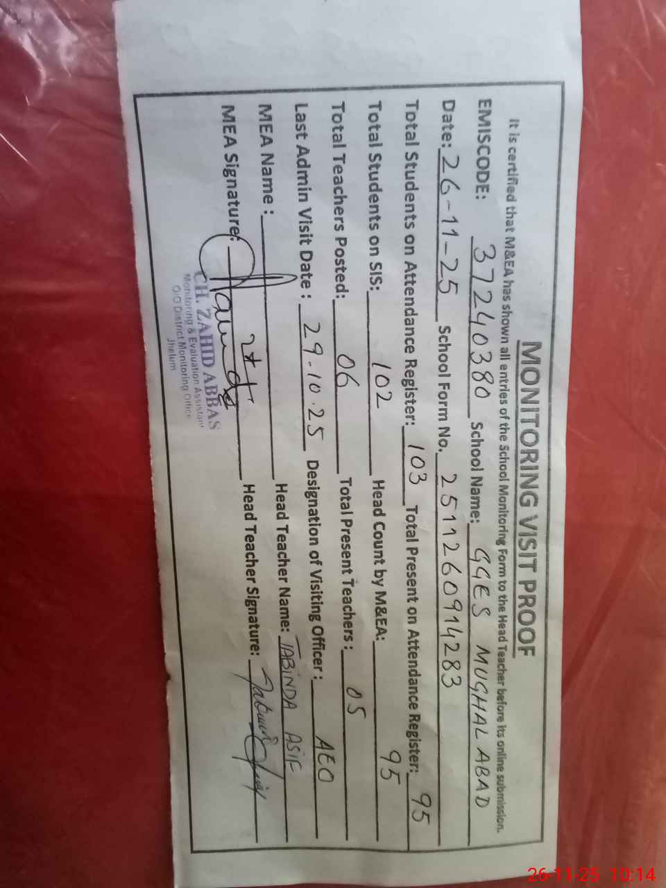 | EMIS Code: 37240380 | Name of School: GGES MUGHAL ABAD | |||