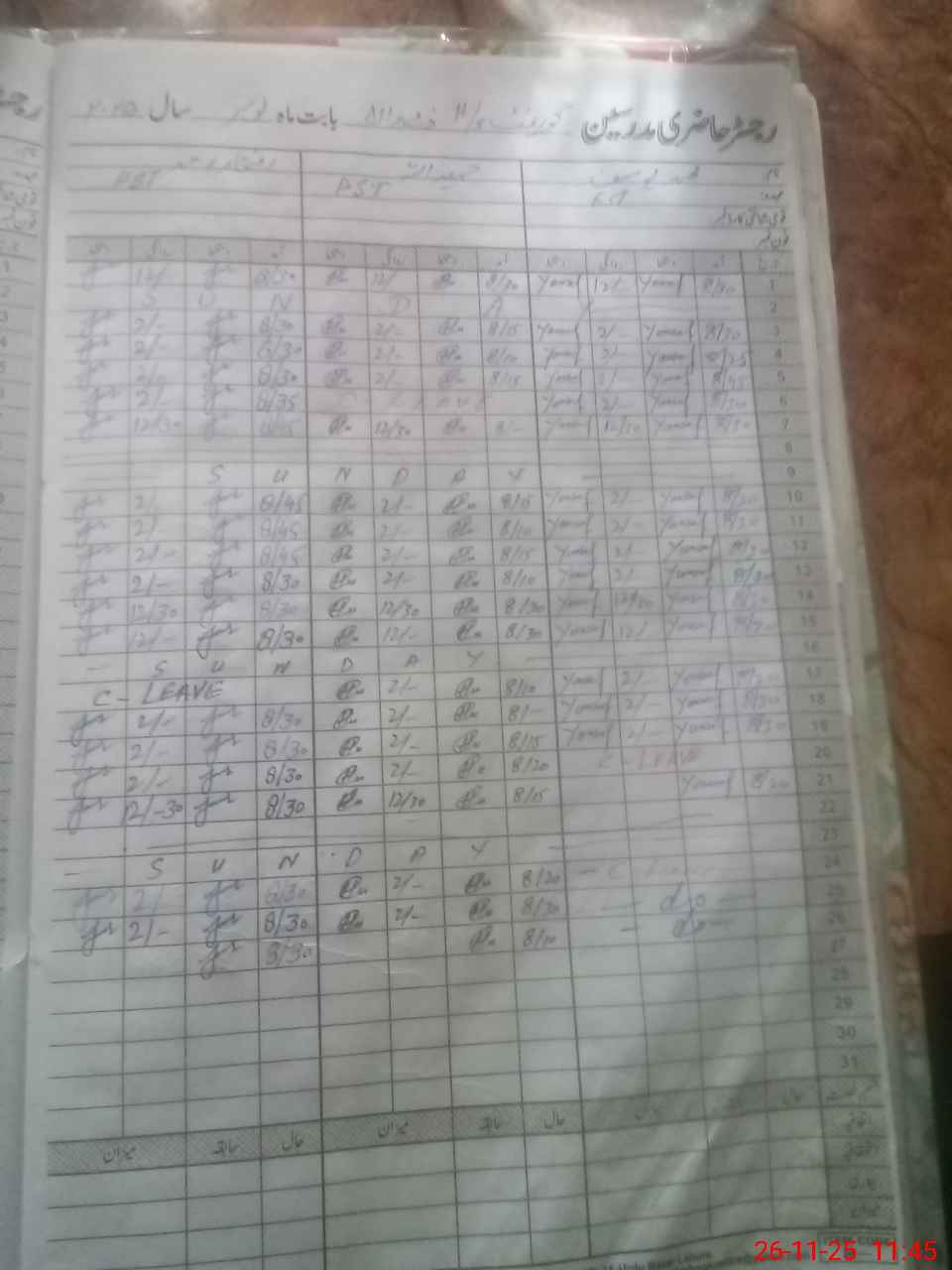 | CNIC | Full Name | Designation | R/C | Absence During Last Calender Month |