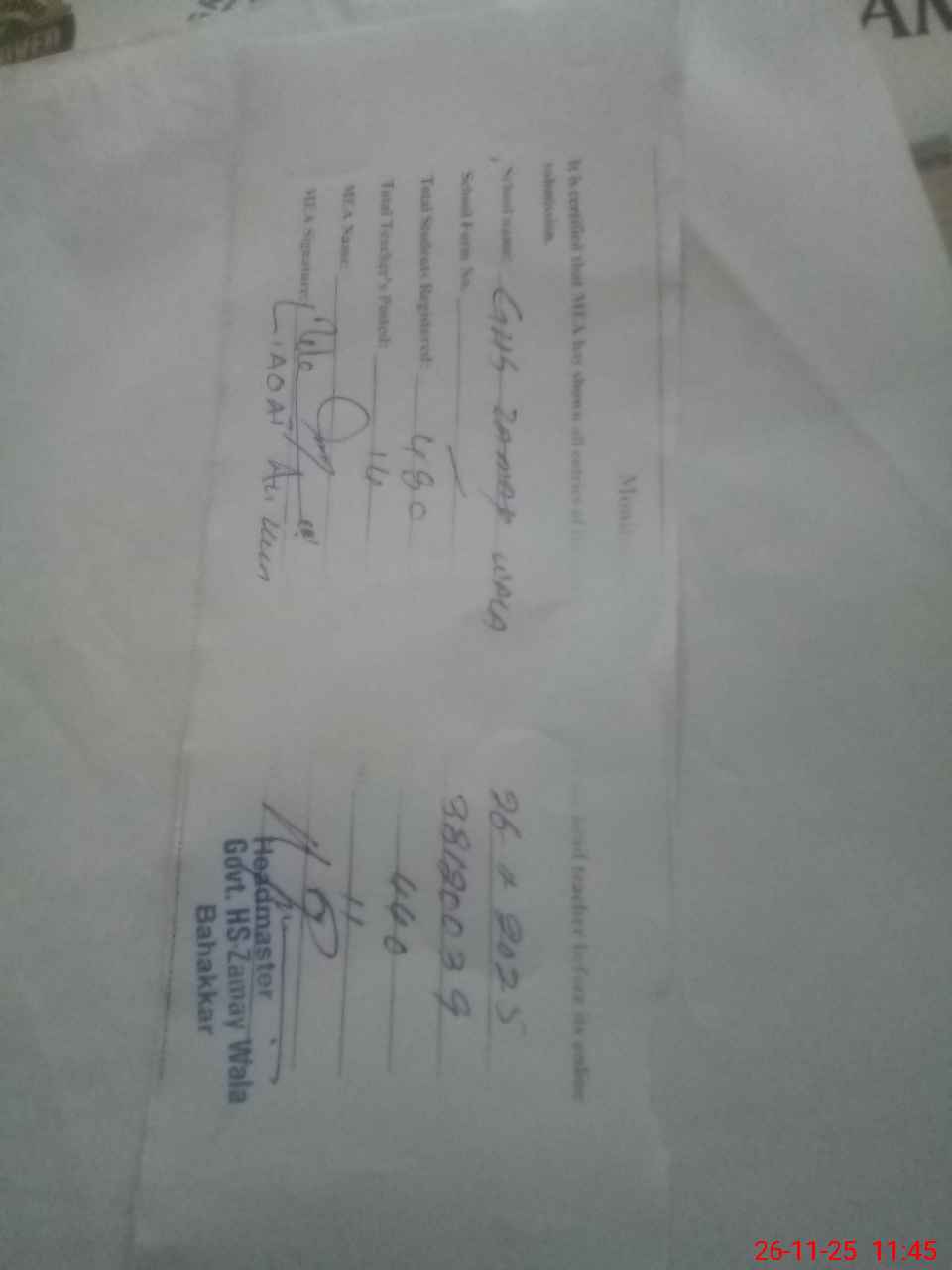 | Name: MU**** IM**** Designation: (School Headmaster's/Headmistress's) Headmaster Phone/Cell Number: 03**** |