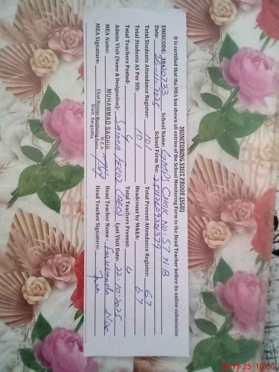 | EMIS Code: 38420733 | Name of School: GMPS CHAK NO.57 NB | |||