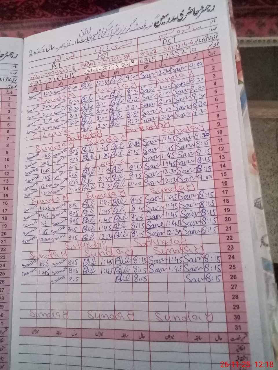 | CNIC | Full Name | Designation | R/C | Absence During Last Calender Month |