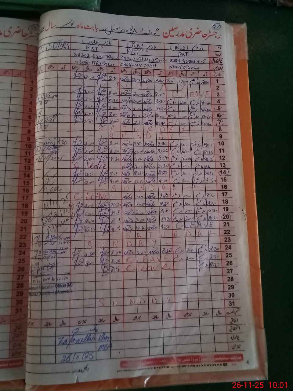 | Name: Na**** Ah**** Kh**** Designation: (School Headmaster's/Headmistress's) PST Phone/Cell Number: 03**** |