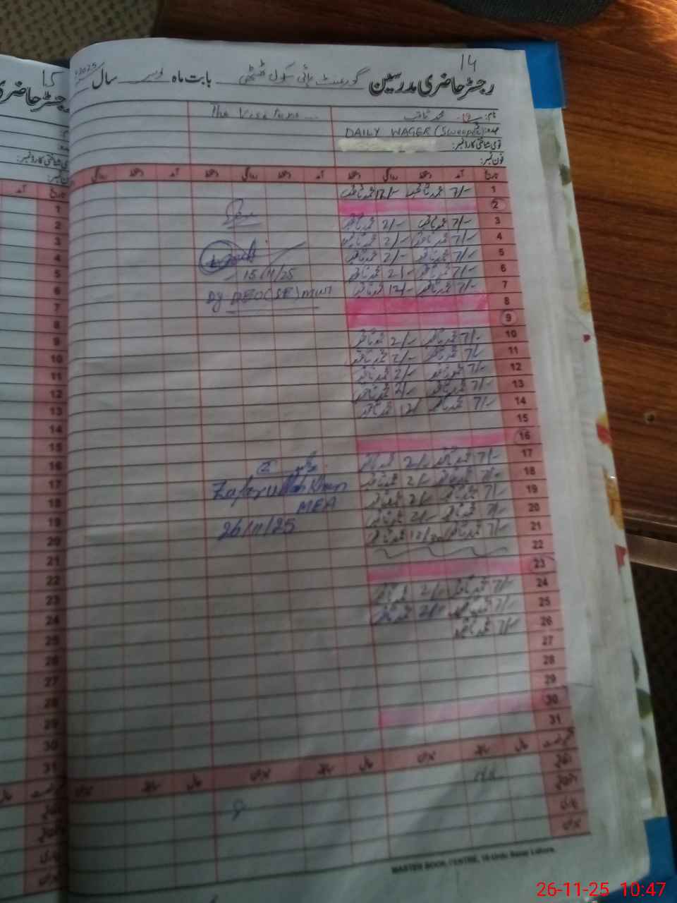 | Monitoring Date: 26-11-2025 | Start Time: 26-11-2025 10:10 AM | End Time: 26-11-2025 11:07 AM | Name of MEA: ZA**** UL**** KH**** | |