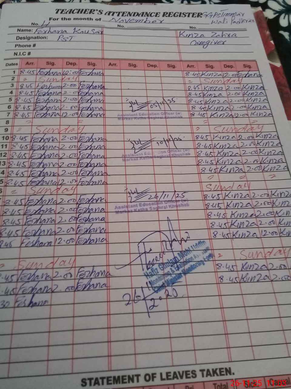 | Name: NA**** FA**** Designation: (School Headmaster's/Headmistress's) PST Phone/Cell Number: 03**** |