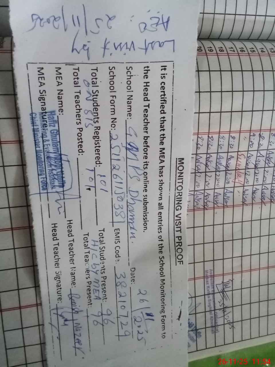 | Certified that this School was Inspected by the Undersigned MEA/DMO Today and the Information Stated Above is as Per Record. | |||||