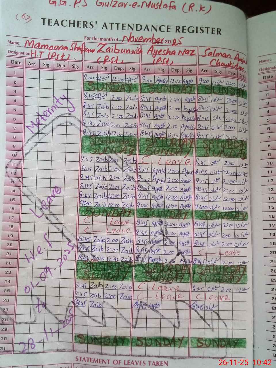 | 35**** | Ma**** Sh**** | Regular | 30 | 0 | 0 | 30 | 0 | 0 | 0 | 0 | 0 | Maternity | |