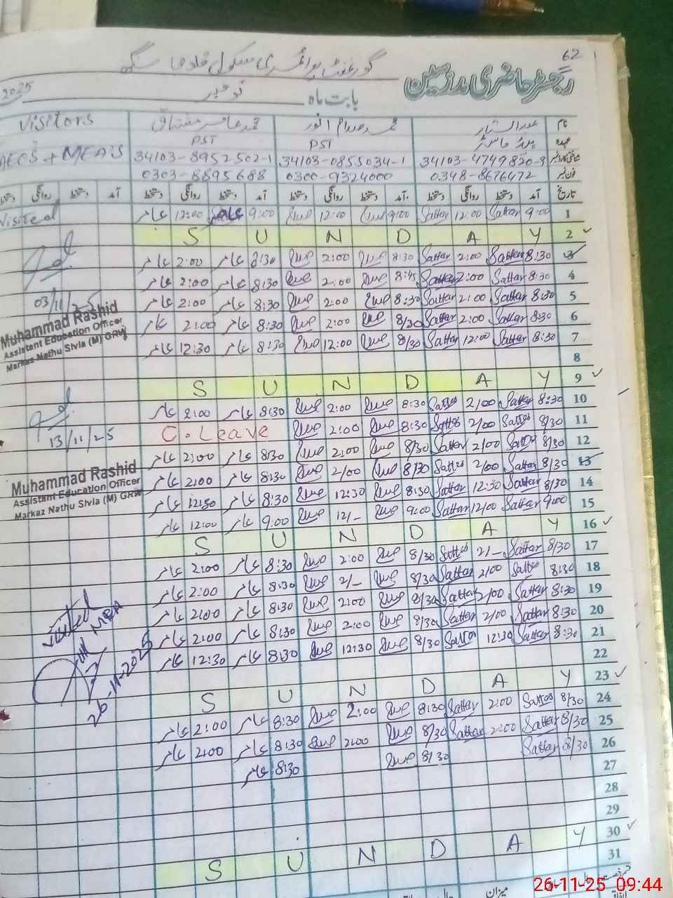 | Name: Ab**** Sa**** Designation: (School Headmaster's/Headmistress's) PST Phone/Cell Number: 03**** |
