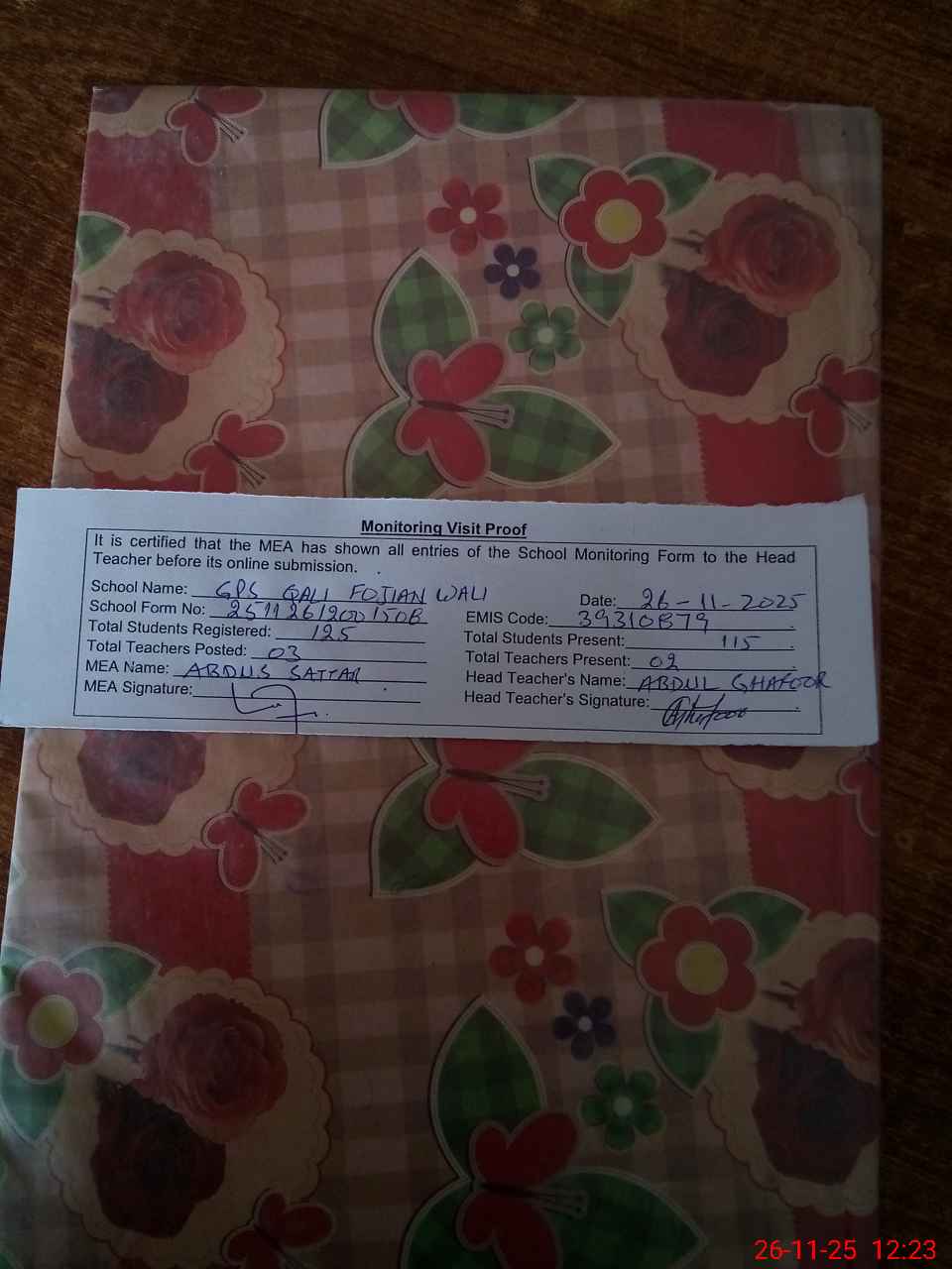 | EMIS Code: 39310879 | Name of School: GPS QALI FOJIAN WALI | |||