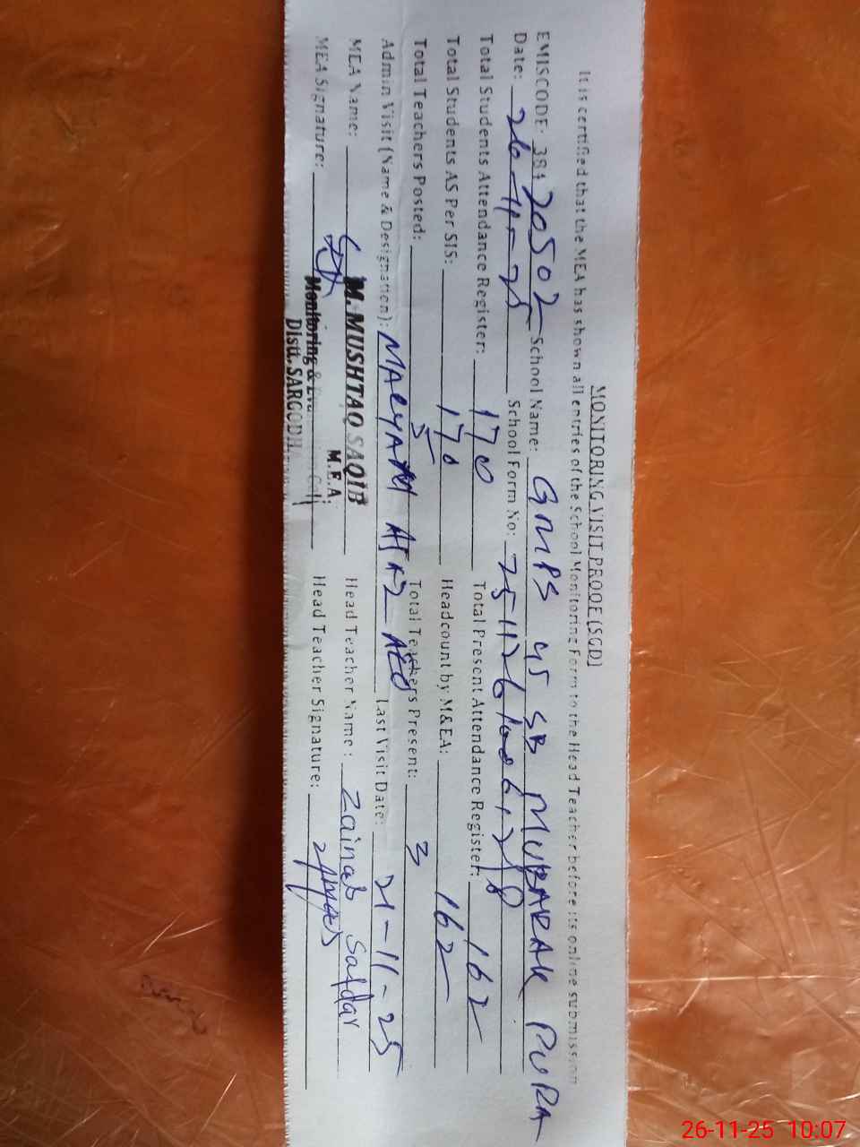 | EMIS Code: 38420502 | Name of School: GMPS CHAK NO.45 SB MUBARAK PURA | |||