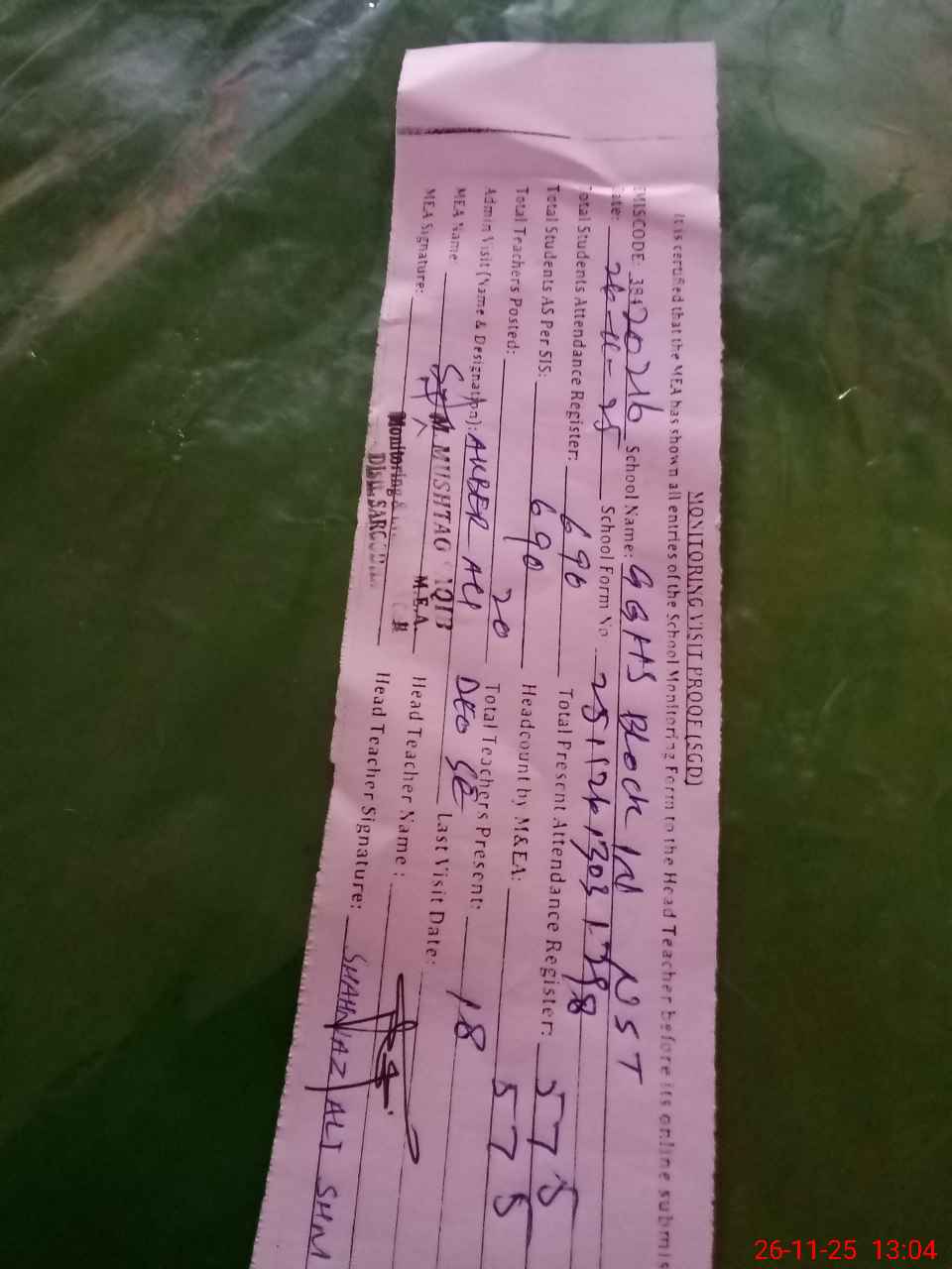 | EMIS Code: 38420216 | Name of School: GGHS BLOCK-W NEW SATTELITE TOWN SARGODHA | |||