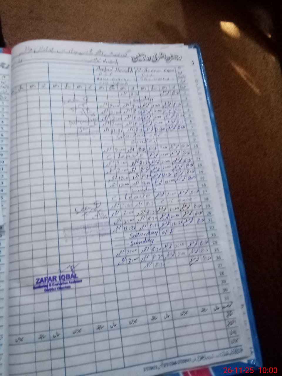 | CNIC | Full Name | Designation | R/C | Absence During Last Calender Month |