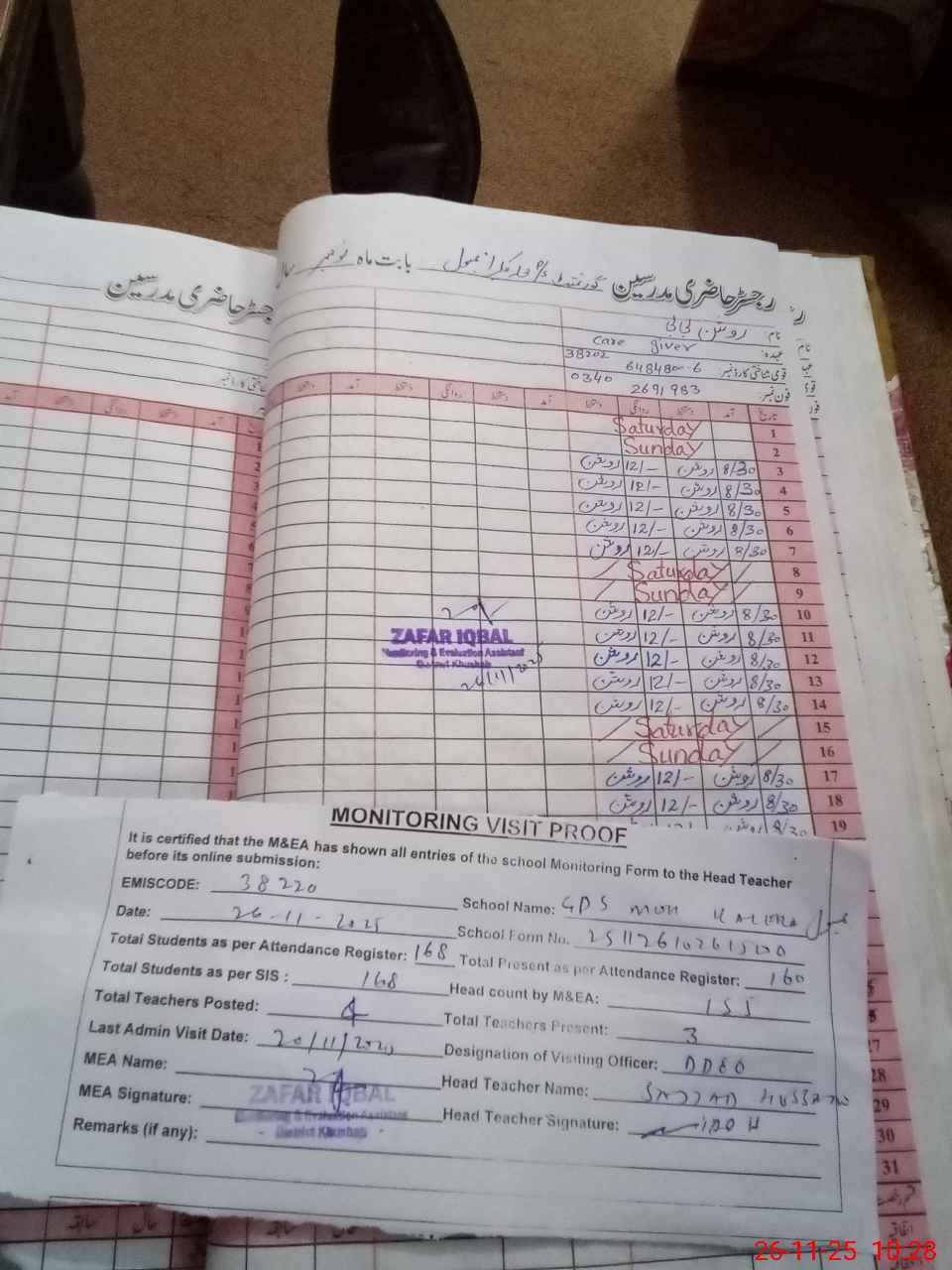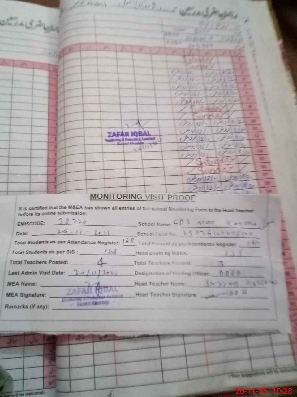| Remarks (Use Separate Page if Required): Last visit DDEO 20 November 2025 Total on register 168Total on sis 168 | |||||