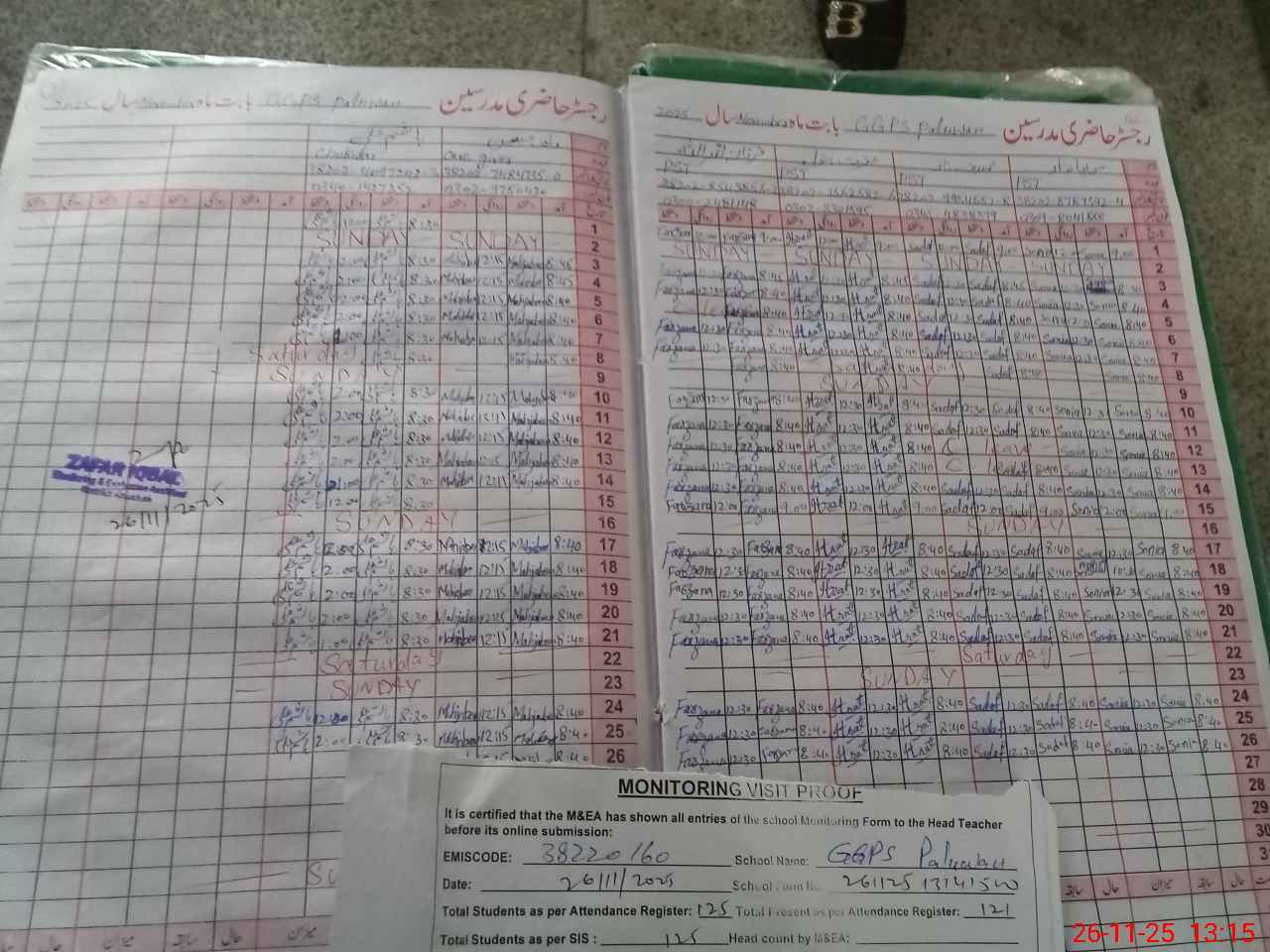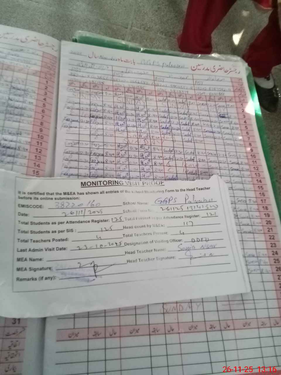 | Remarks (Use Separate Page if Required): last visit DDEO 23 October 2025 Total on register 125 Total on sis 125 | |||||