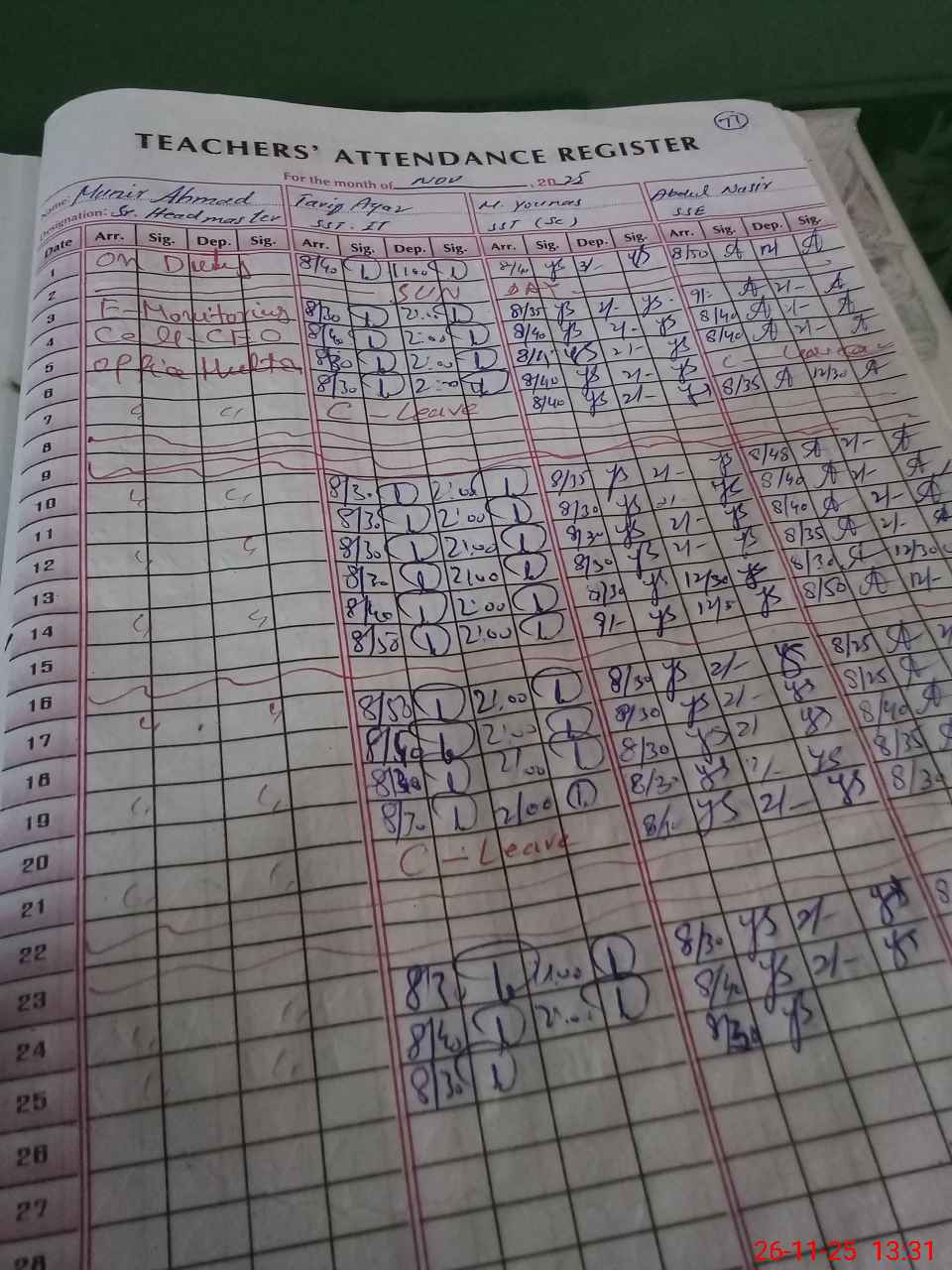 | 36**** | Mu**** Ah**** | Sr. Headmaster | Regular | 0 | 0 | 0 | 0 | 0 | 0 | 0 | 0 | 0 | Other |