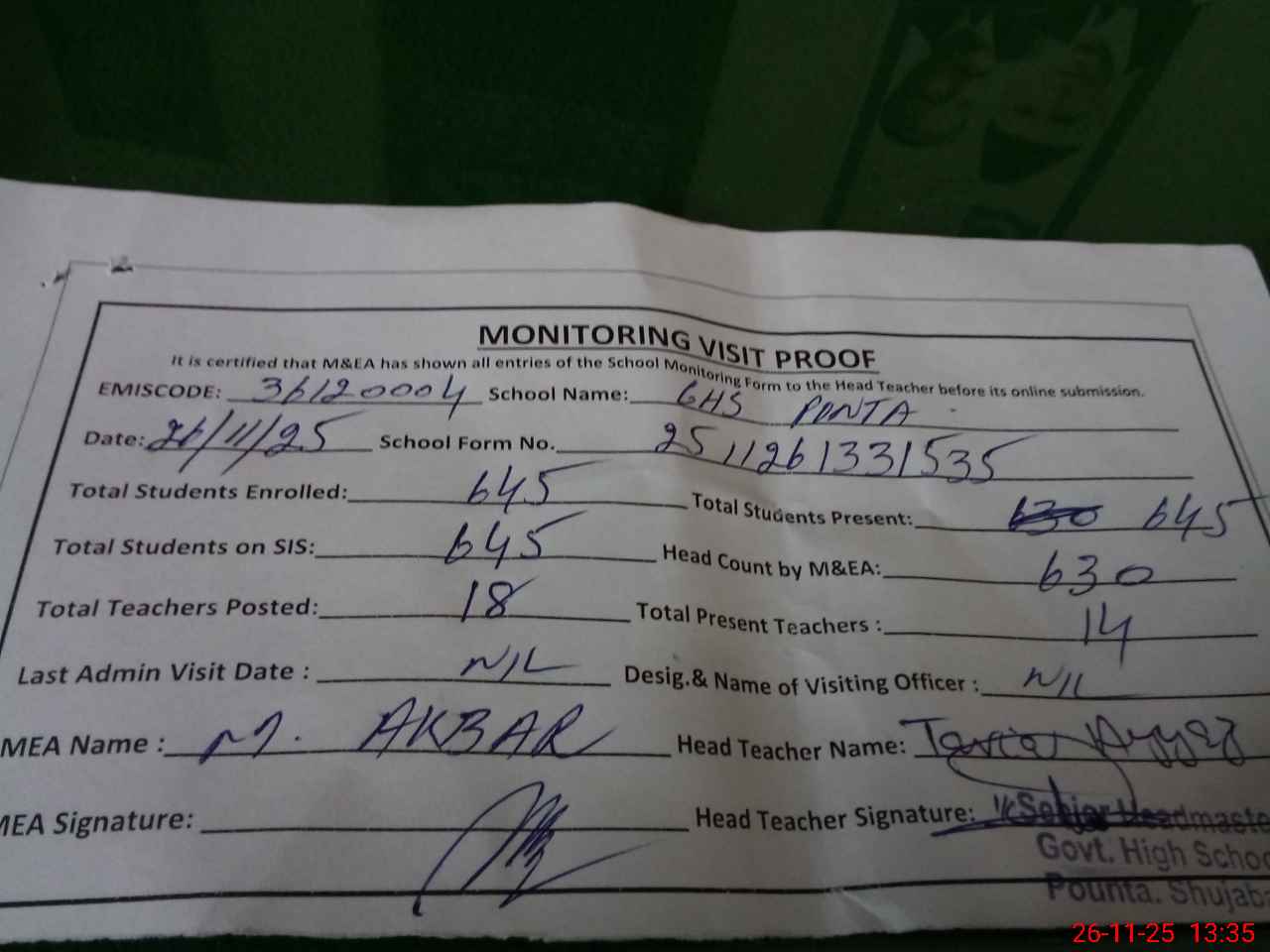 | EMIS Code: 36120004 | Name of School: GHS POUNTA SHUJABAD | |||