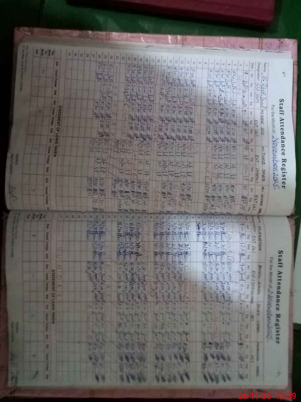 | Monitoring Date: 26-11-2025 | Start Time: 26-11-2025 01:12 PM | End Time: 26-11-2025 01:39 PM | Name of MEA: MU**** YA**** | |