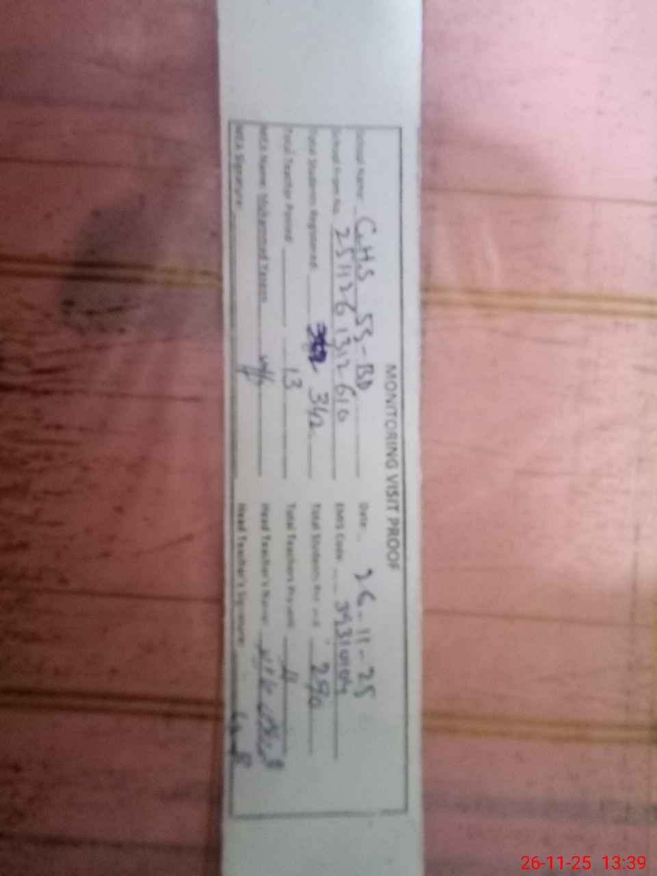 | Attendance Register | Head Teacher | MEA with School | Visit Proof |