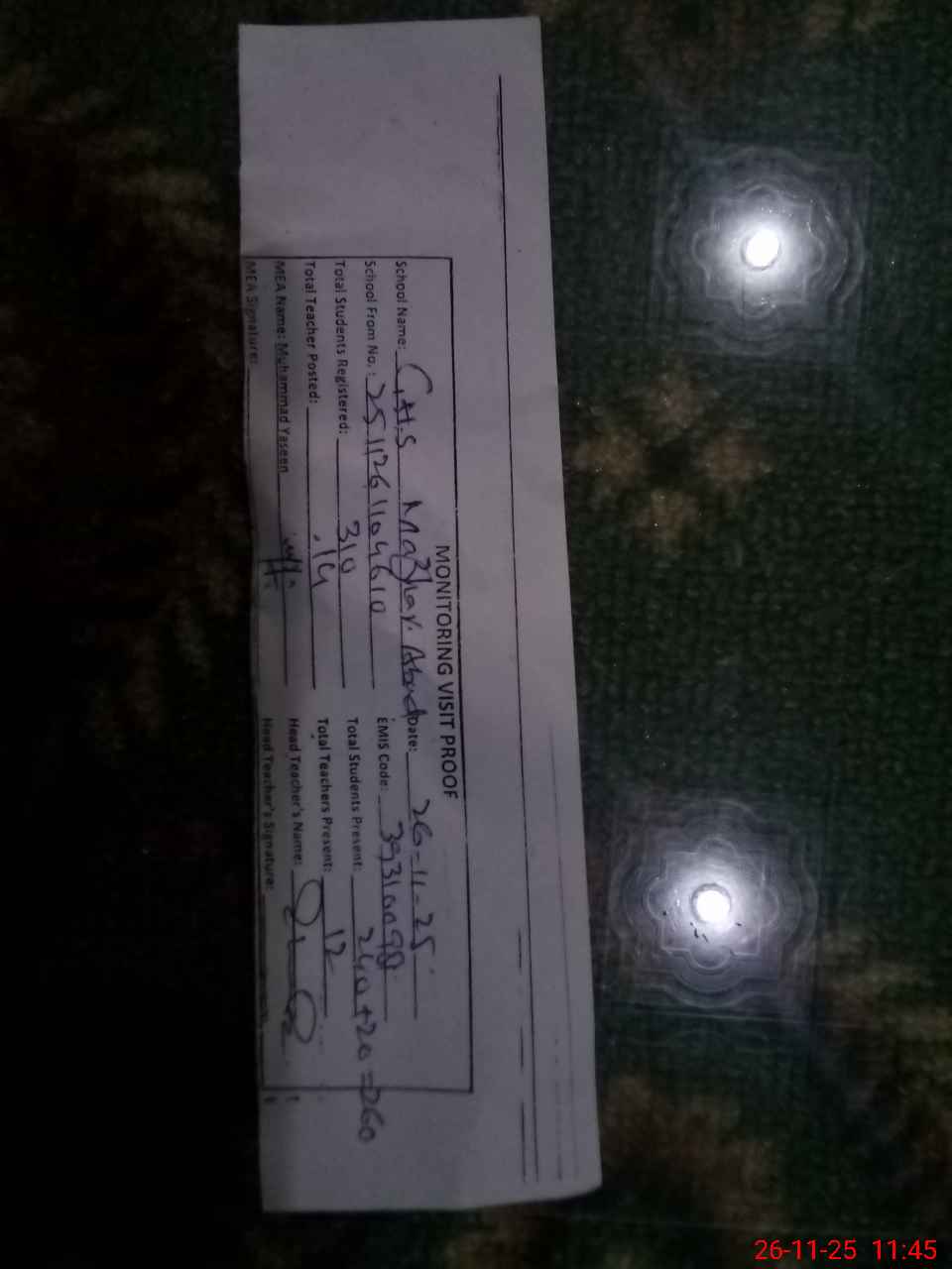 | EMIS Code: 39310098 | Name of School: GHS MAZHAR ABAD | |||