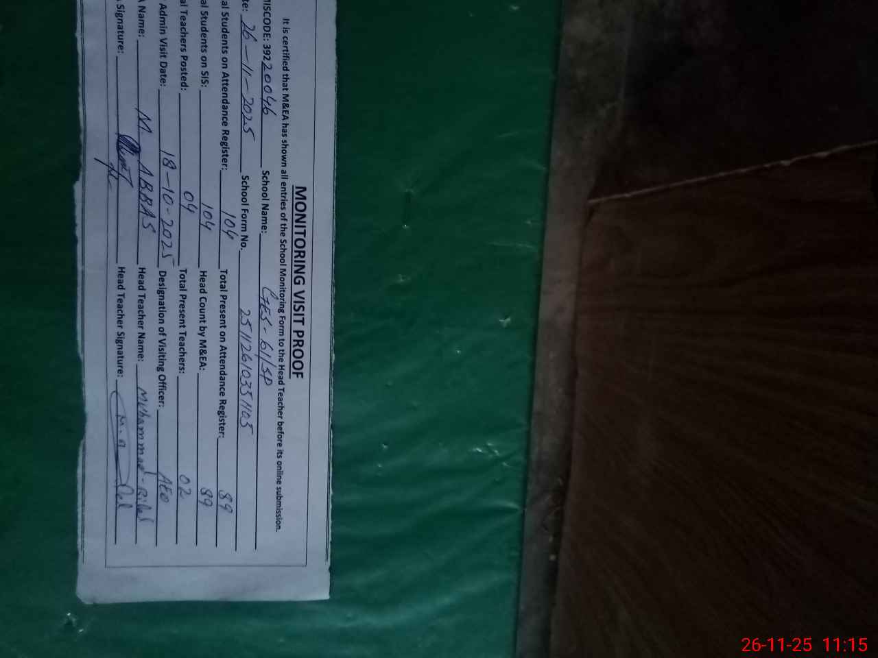 | Monitoring Date: 26-11-2025 | Start Time: 26-11-2025 10:35 AM | End Time: 26-11-2025 11:15 AM | Name of MEA: Mu**** Ab**** | |