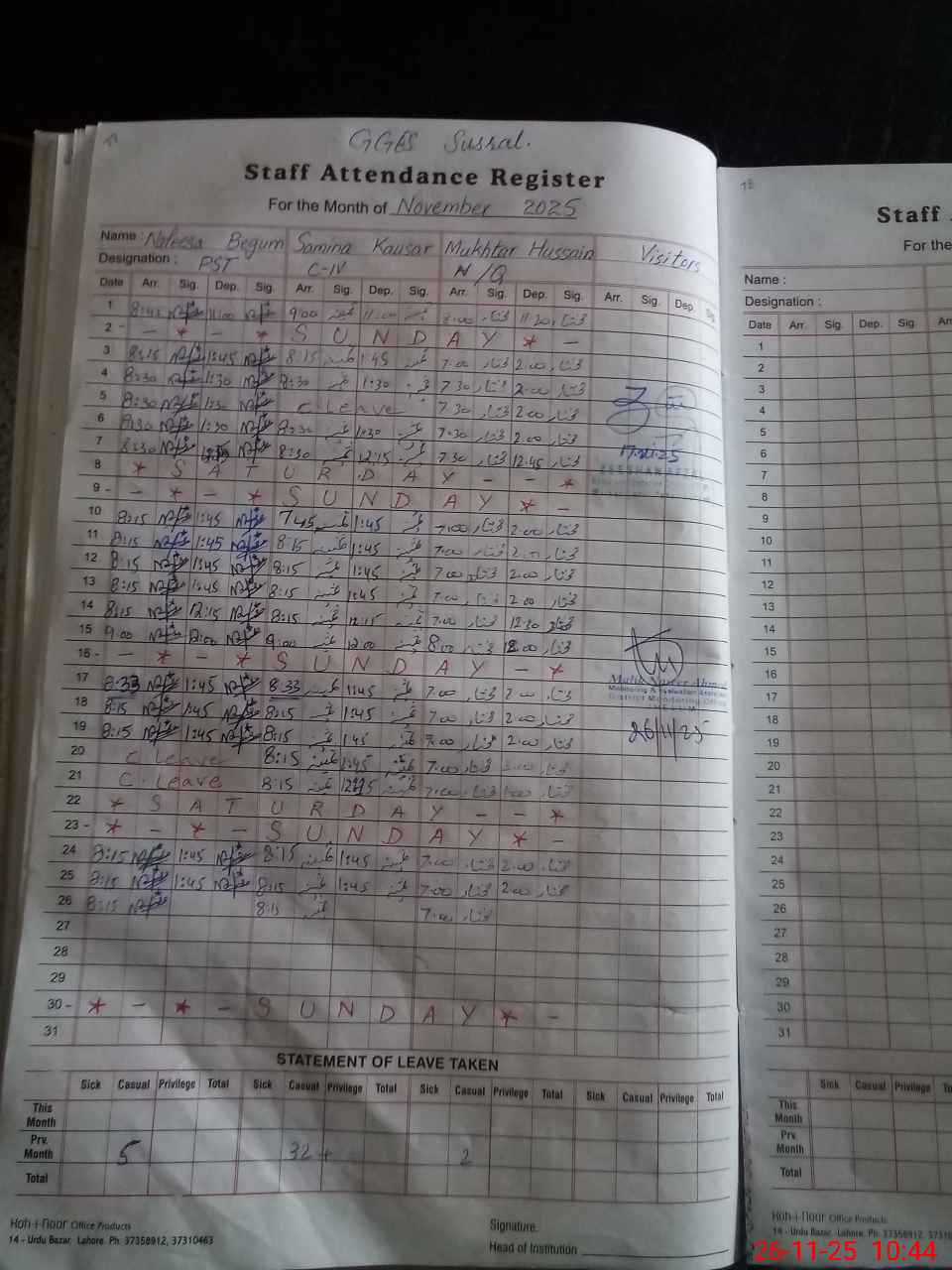 | Leave | Duty | Absent | Maternity | Medical | Ex- Pak |